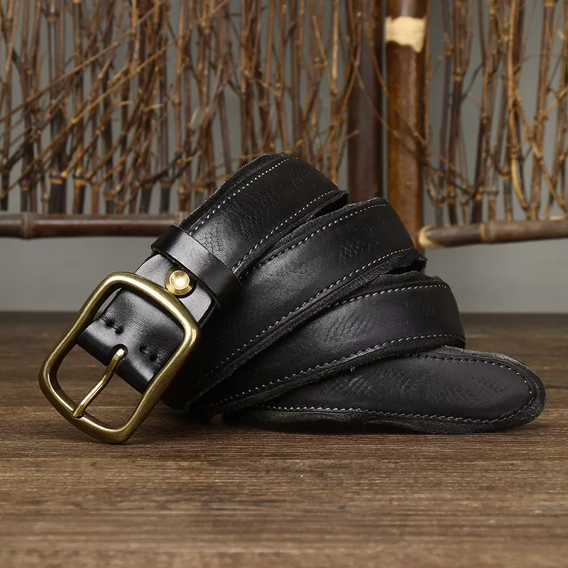 Genuine Leather Belt for Men - 3.3CM Fashion Copper Buckle Jeans Strap