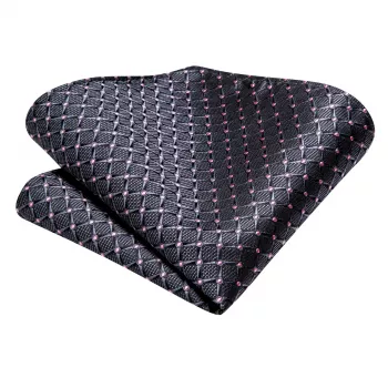 Grey Pink Plaid Silk Necktie with Handkerchief & Cufflinks – Classic Men’s Tuxedo Set