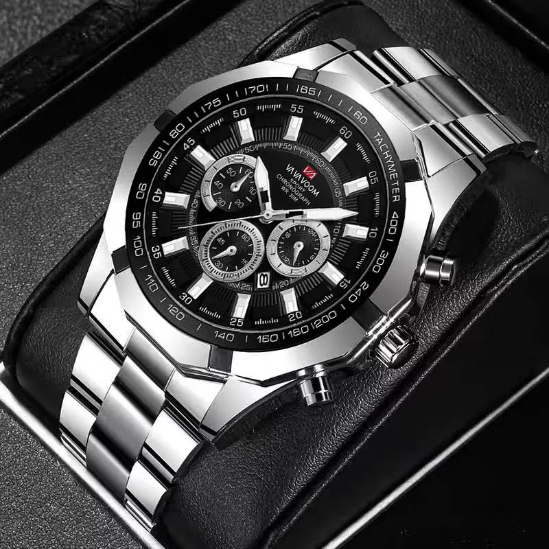 Luxury Men's Gold Stainless Steel Quartz Watch - Waterproof Sports Calendar